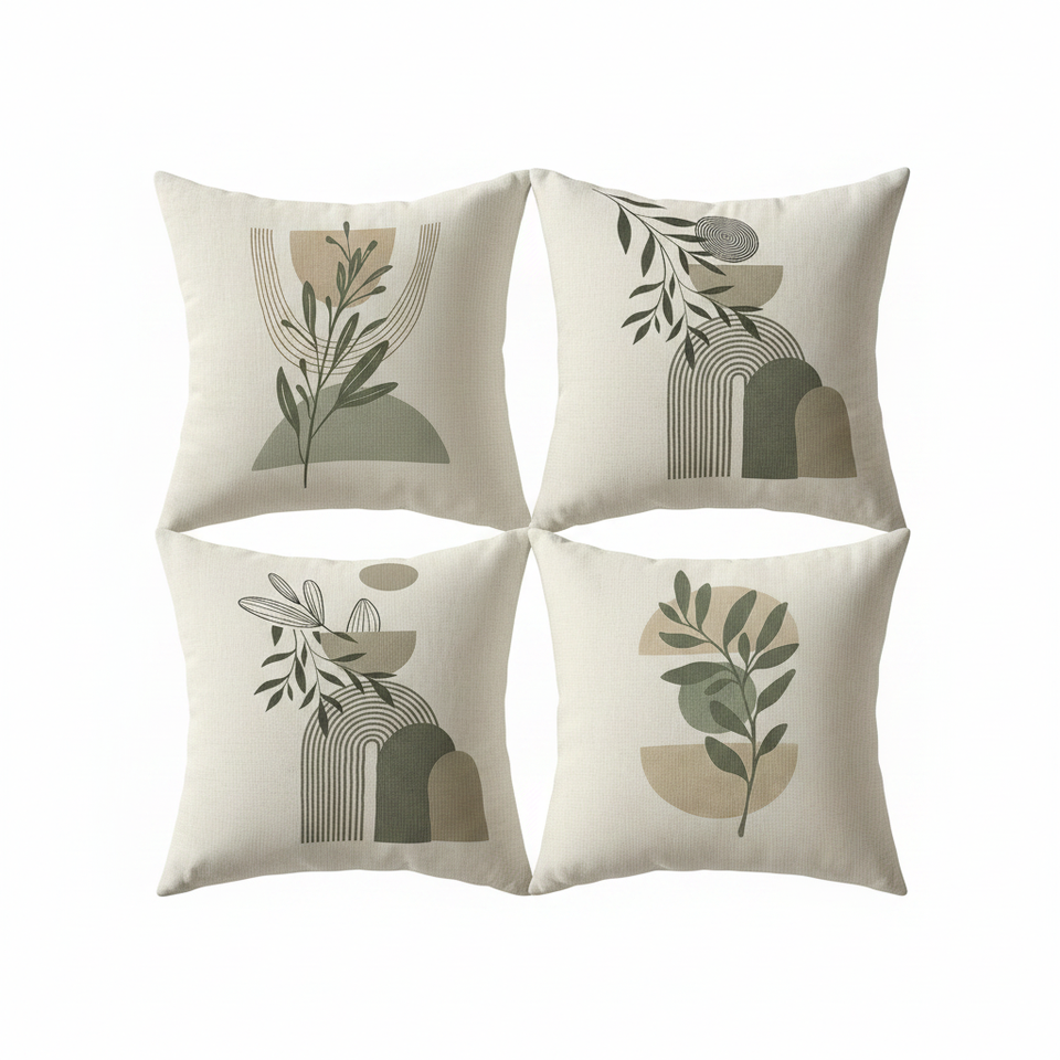 Set di 4 Copricuscini Moderni da Esterno in Stile Boho Astratto, 20x20 Pollici, in Misto Lino, Cuscini Decorativi Comodi per Sedute