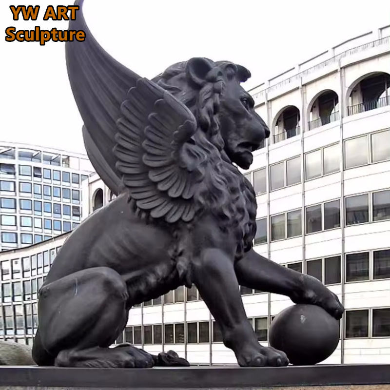 Moderna Statua di Leone in Bronzo Dorato a Grandezza Naturale con Stampa Digitale per Esterni