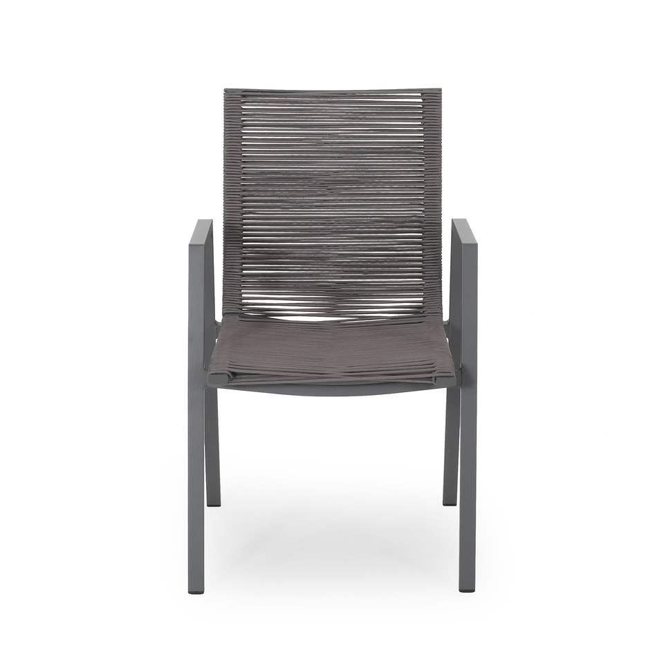 Set di 2 Sedie da Pranzo Moderne per Esterni, Grigio e Grigio Scuro, con Seduta in Alluminio e Corda