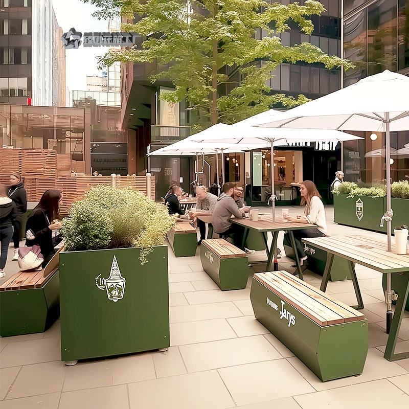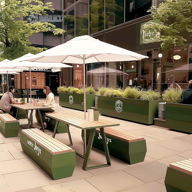 Moderno tavolo da pranzo all'aperto panca popolare combinazione di legno di ferro per piccoli metri Casual Gourmet Street Cafe tavolo all'aperto