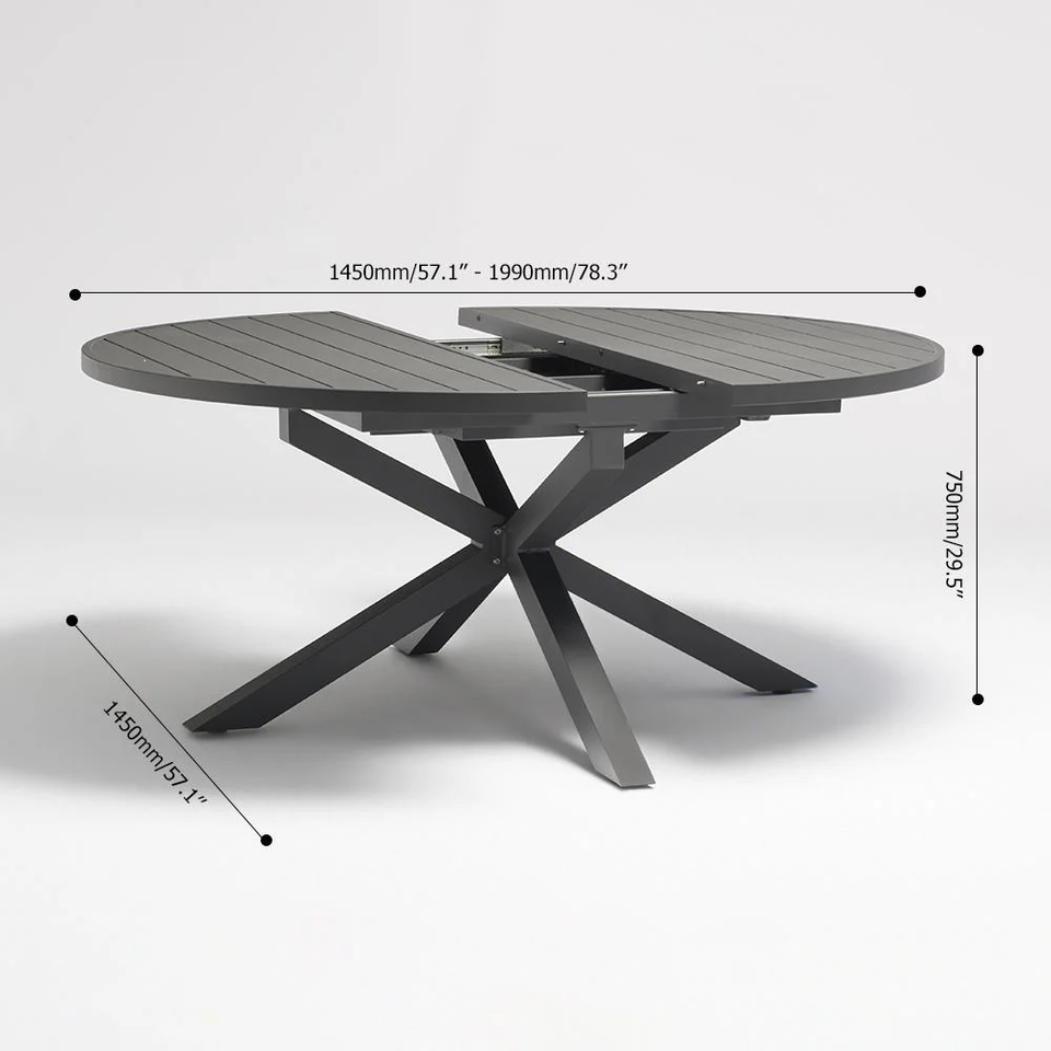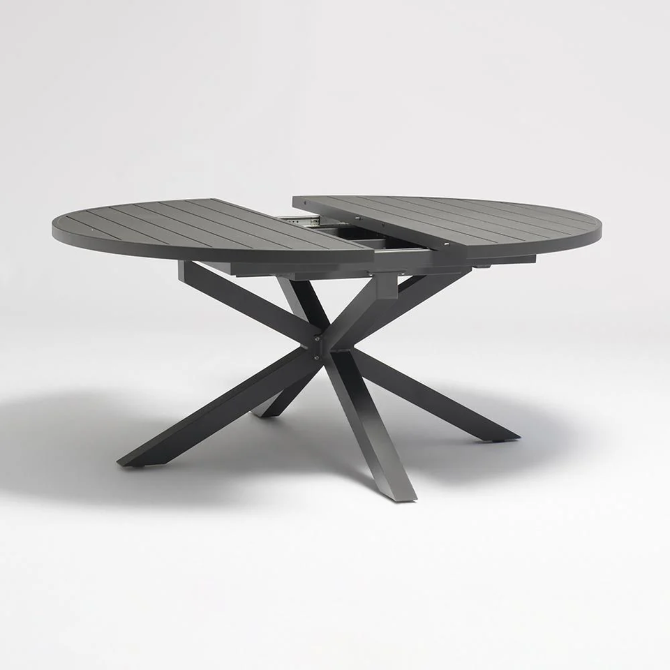 Tavolo da Pranzo Rotondo Estensibile Moderno per Esterni con Telaio in Alluminio Nero, Tavolo Allungabile per Parco, Hotel, Cortile, Esterno