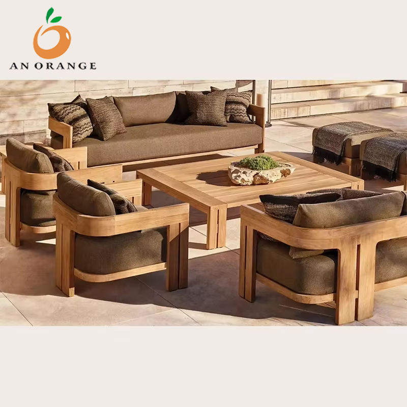 Moderno giardino esterno divano cortile di alta qualità Hotel terrazza solido Teak mobili con Rattan per Patio Villa terrazze sulla spiaggia