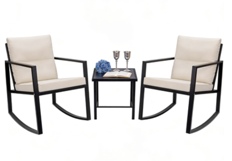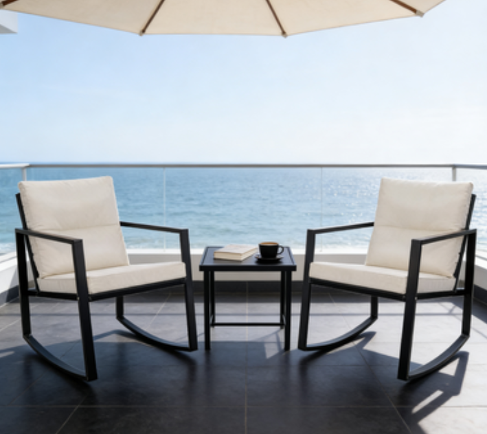 Modern Outdoor Rocking Chair Set with Durable Metal Frame for Terraces, Balconies, and Gardens