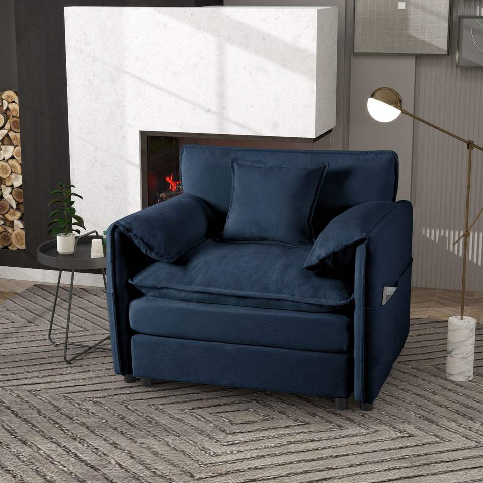 Modern Oversized 41.73\" Blue Chenille Upholstered Armchair Deep Seat Reading Sofa 1 Toss Pillow for Bedroom Living Room
