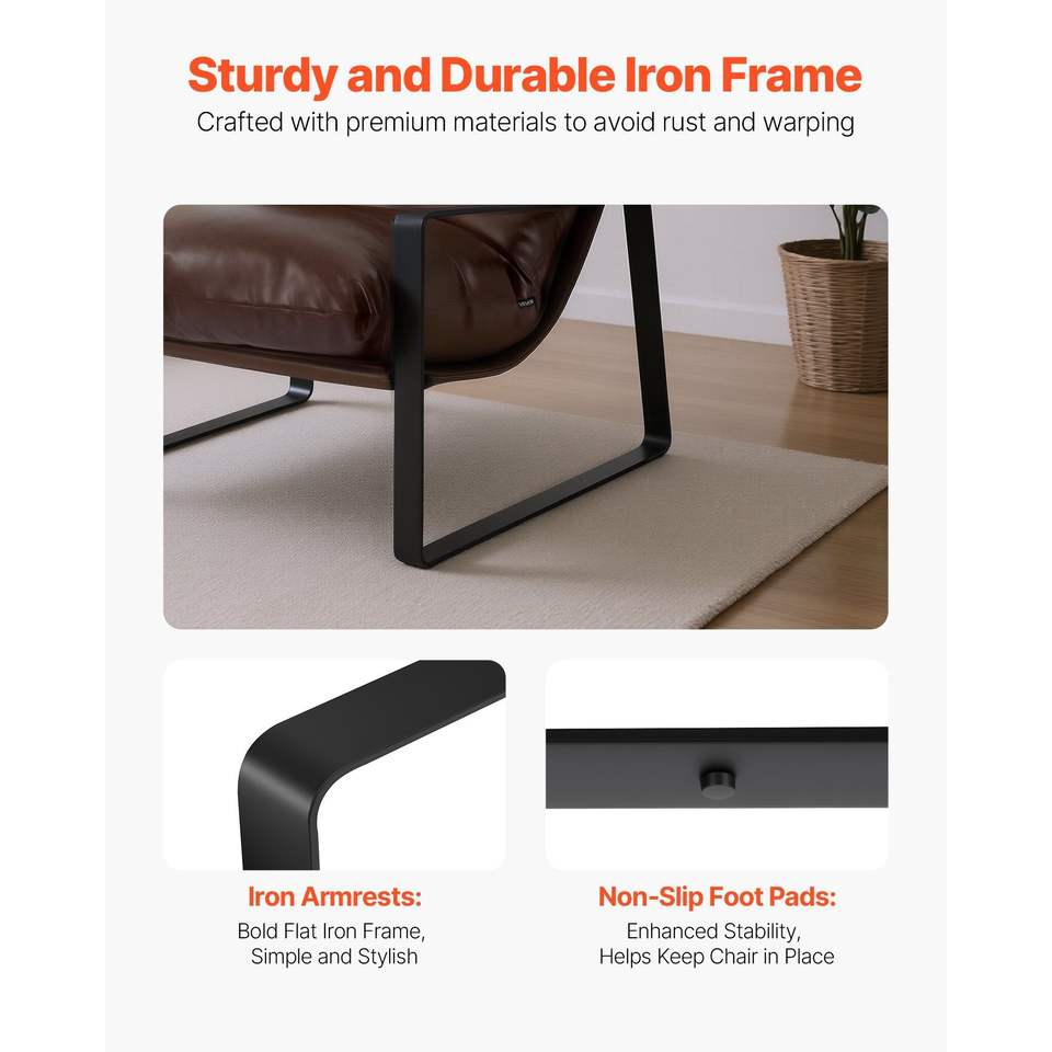 Poltrona Moderna in Pelle PU con Braccioli Imbottiti, Morbida Imbottitura in Schiuma, Telaio in Metallo Robusto, Sfoderabile per Soggiorno