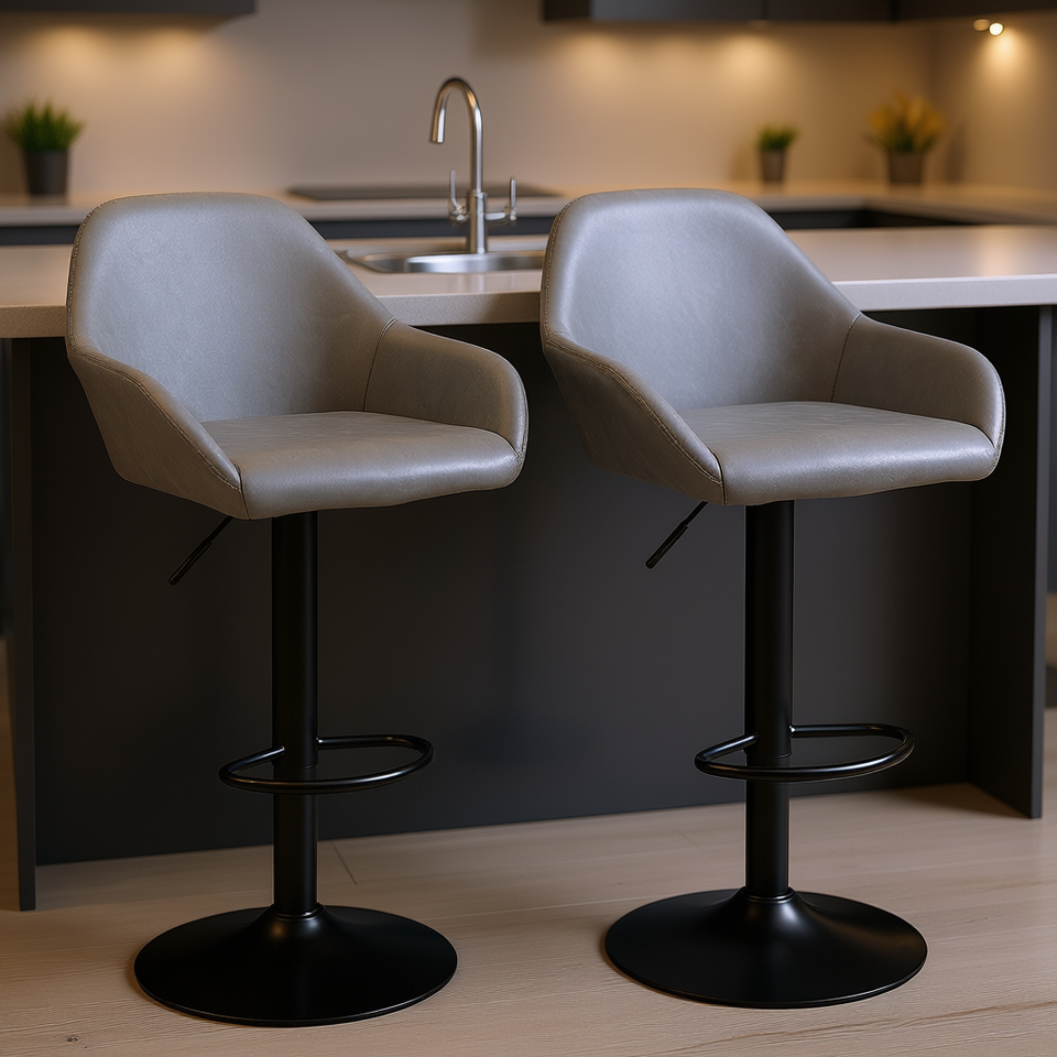 Set di 2 sgabelli da bar moderni in similpelle, regolabili e girevoli con poggiapiedi, colore grigio, per bancone cucina e sala da pranzo