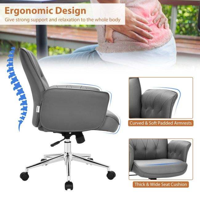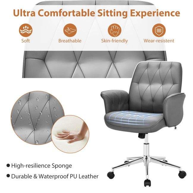Sedia da Ufficio Moderna in Pelle PU con Rotazione e Braccioli Regolabili per Casa o Tempo Libero
