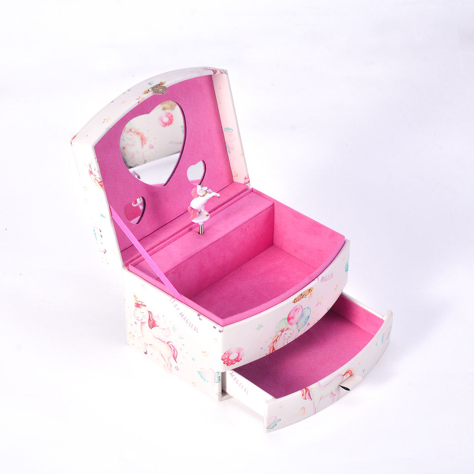 Moderna Scatola Musicale Rettangolare in Pelle PU per Bambini con Chiusura a Chiave, Design Unicorno Bianco, Portagioie