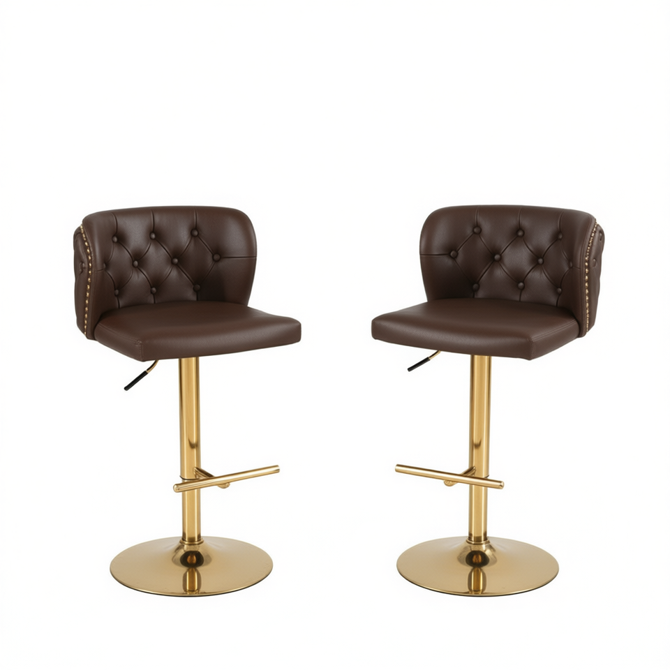 Sgabelli da Bar Moderni in PU, Schienale Intero Trapuntato, Girevoli, Altezza Regolabile, Marrone, Set da 2, per Casa, Pub, Cucina, Isola