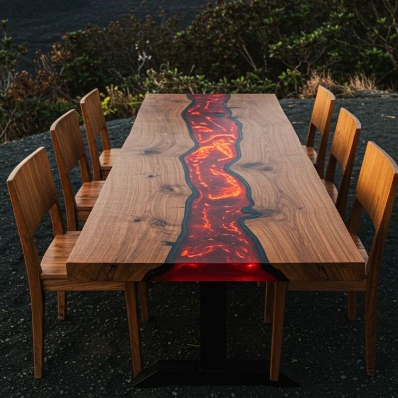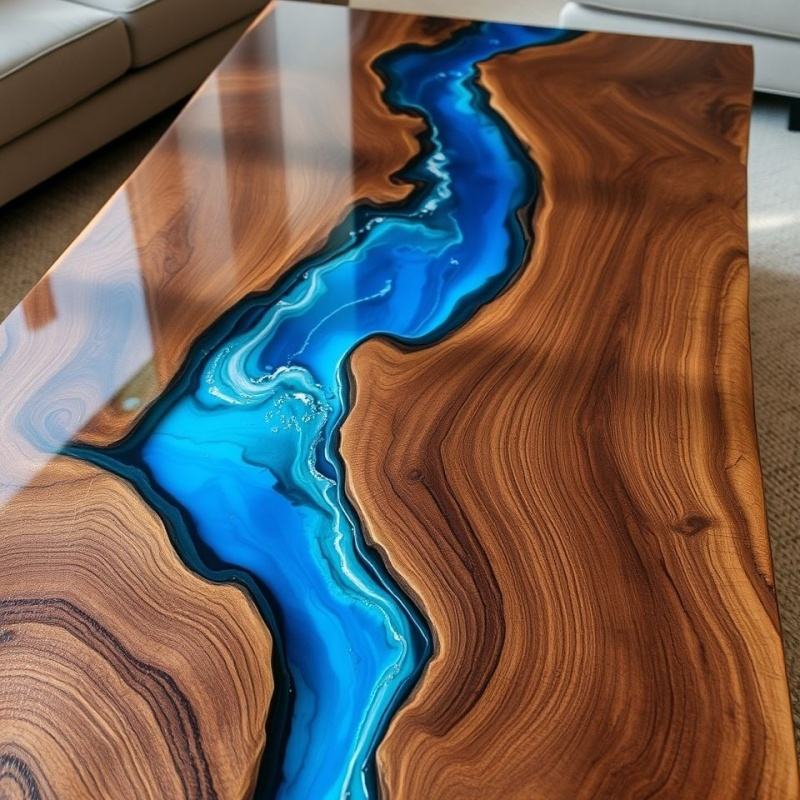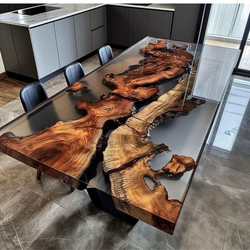 Tavolo in Resina Epossidica Moderno Design Personale in Noce Naturale per Soggiorno Ufficio Hotel Scrivania Sala da Pranzo