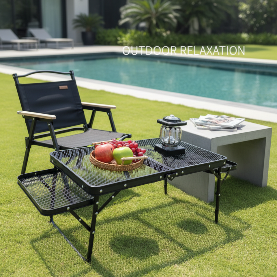 Tavolo da Campeggio Moderno Portatile Pieghevole Leggero e Resistente in Metallo per Barbecue all'Aperto