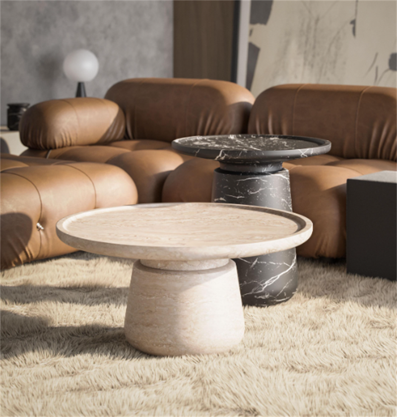 Moderno pratico tavolino laterale in marmo nero rotondo in marmo Marquinia nero tavolini per soggiorno