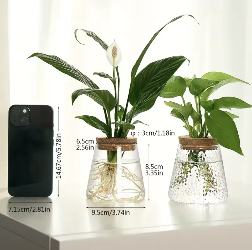 Vaso di propagazione moderna vaso di acqua idroponica fioriera supporto in vetro trasparente pianta terrario con coperchio in sughero e supporto in legno