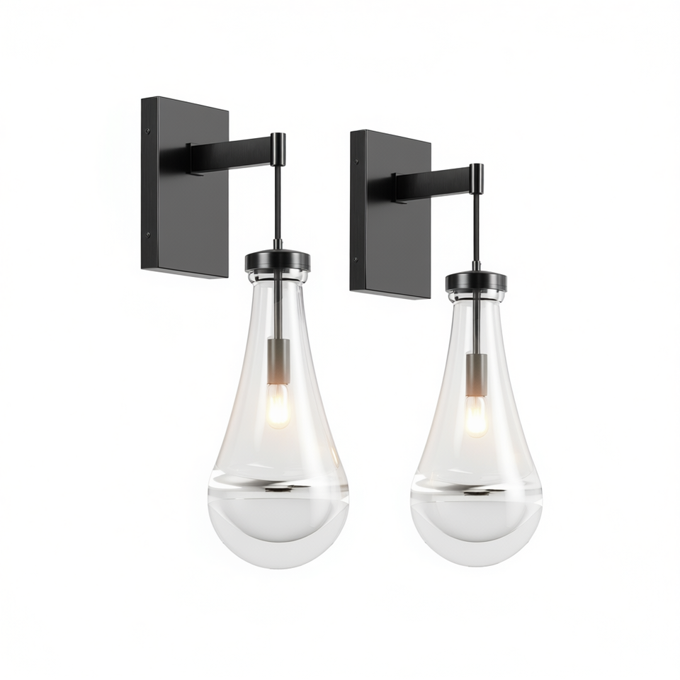 Modern Raindrop Glass Wall Sconces Black Iron Set Of Two Dimmable LED Bathroom Vanity Lighting