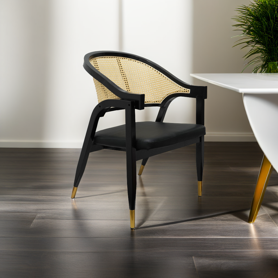 Sedia Moderna in Legno con Schienale in Rattan e Rivestimento in Pelle per Casa, Ufficio, Soggiorno e Ristoranti