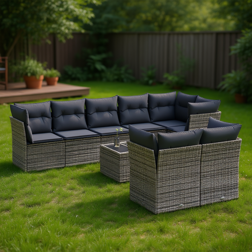 Modern Rattan Garden Sofa Set 6 Seater Outdoor Furniture Weather Resistant Wicker Patio Lounge Set Grey Contemporary Design