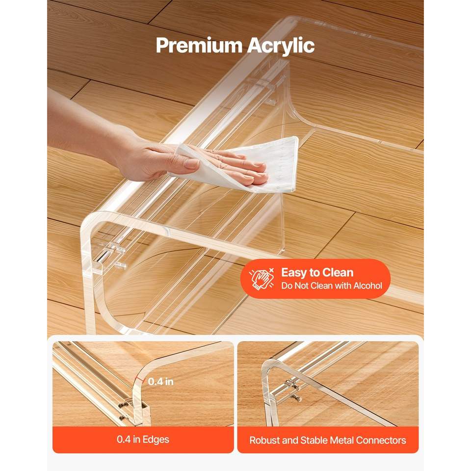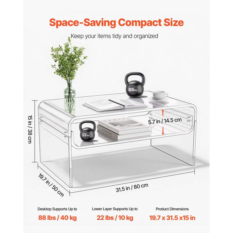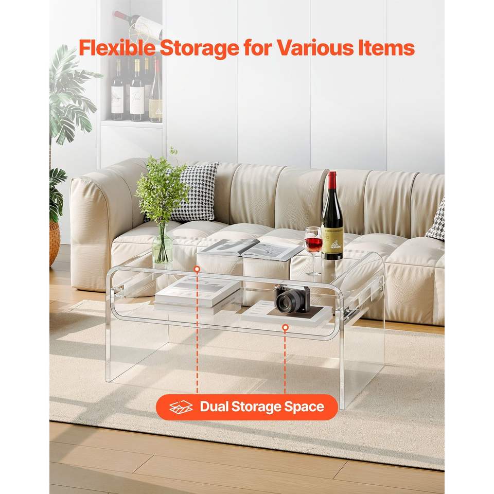 Tavolino da Caffè Moderno Rettangolare in Acrilico a 2 Livelli con Ripiano Portaoggetti per Sala da Pranzo