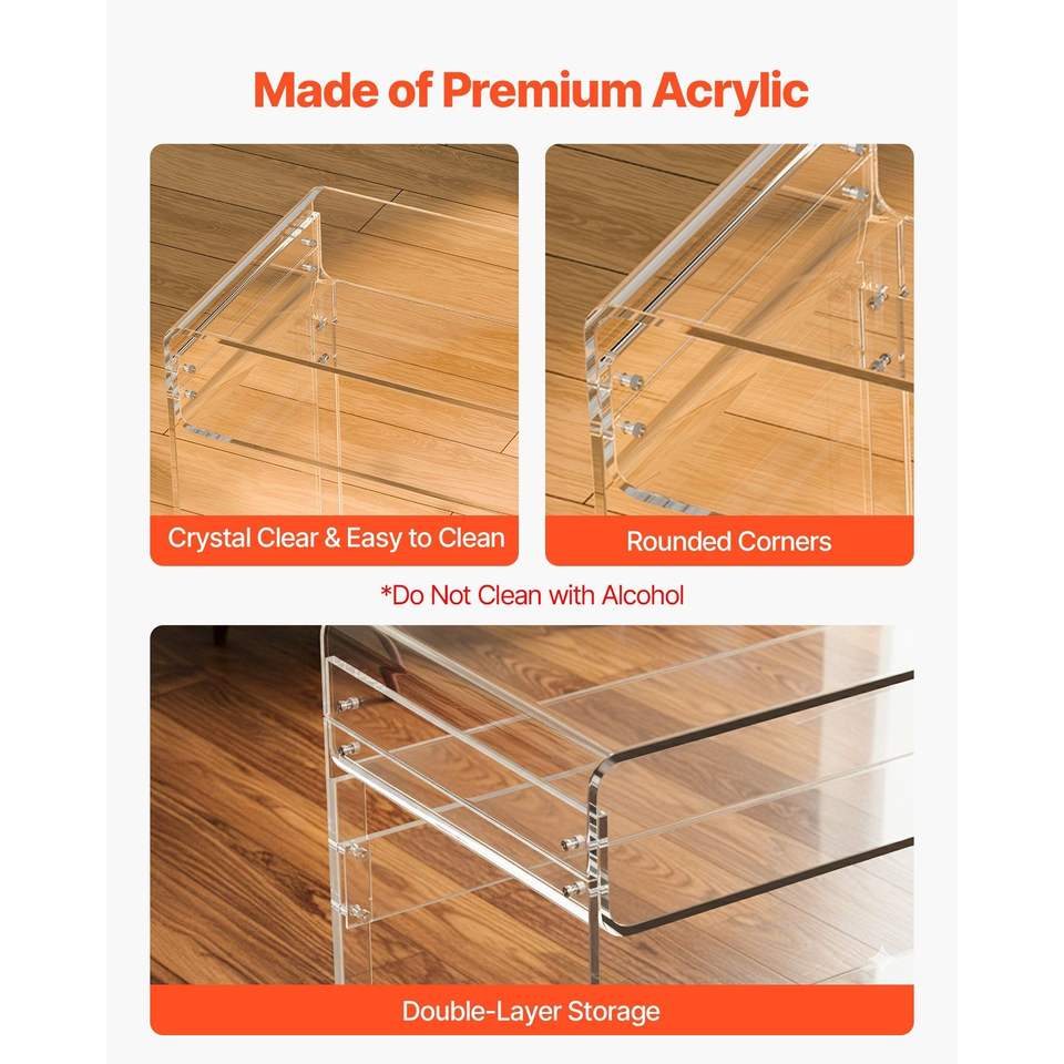 Tavolino Moderno Rettangolare in Acrilico a 2 Livelli, Trasparente, con Ripiano Contenitore, Spesso, per Scrivania, Comodino o Tavolino da Caffè