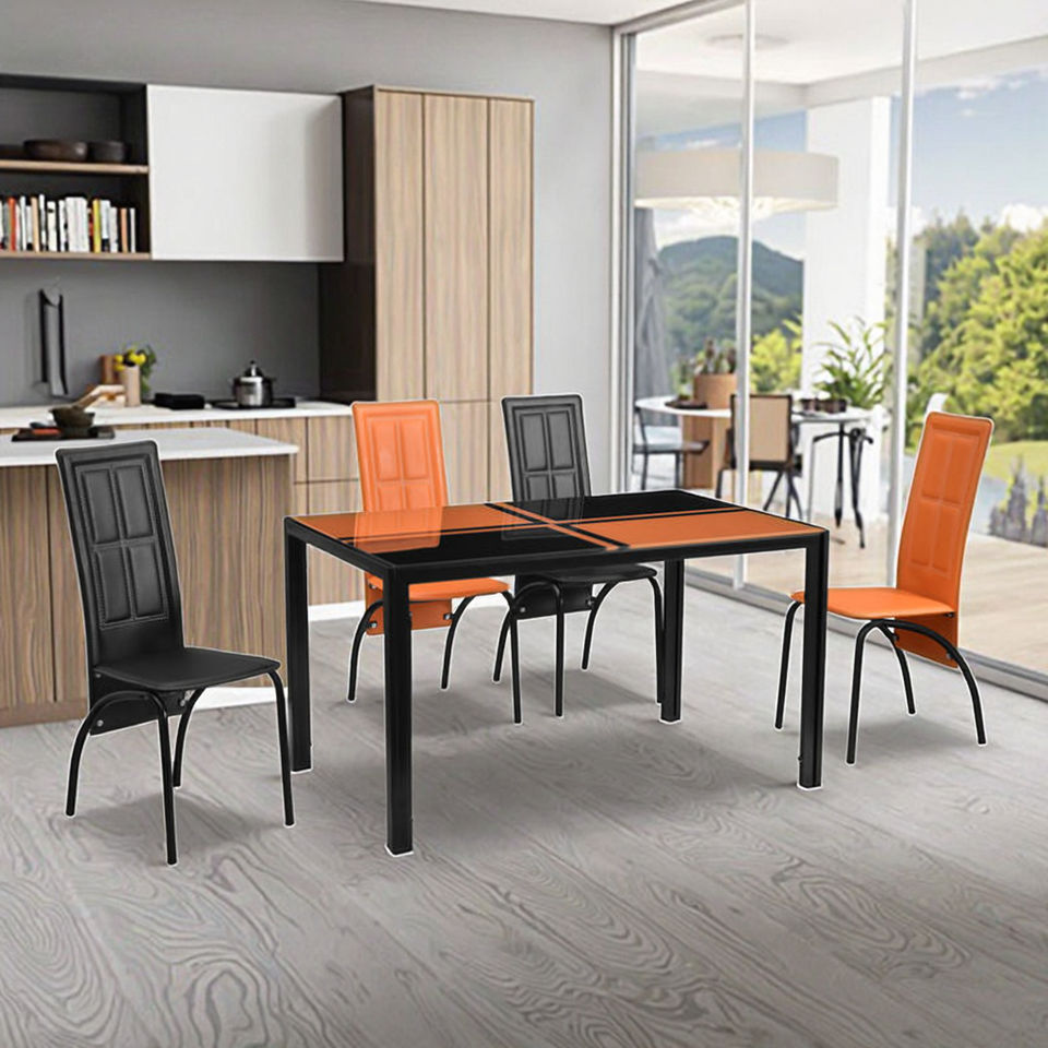 Modern Rectangle Dining Table Set for Home with Durable Tempered Glass Table and 4 Chairs