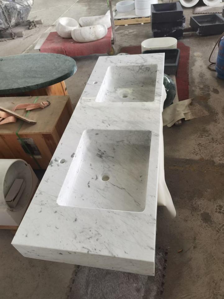 Piedistallo per lavabo a parete in marmo bianco di Carrara rettangolare moderno per alberghi con scolapiatti integrato
