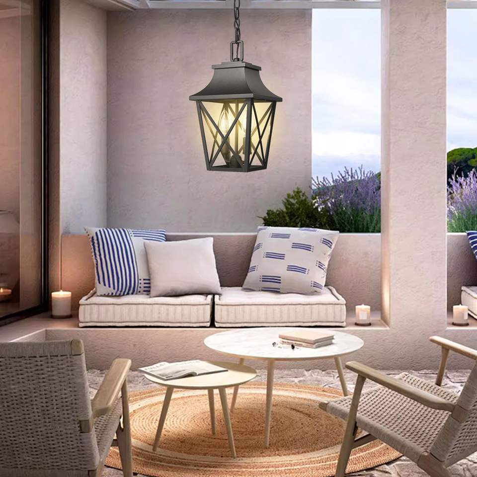 Modern Rectangular Clear Glass Pendant Light Fixture Black Farmhouse Style Outdoor Hanging Lantern 1 Pack for Porch Ceiling