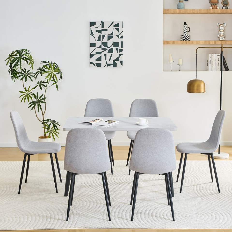 Set Moderno di Tavolo da Pranzo Rettangolare e Sedie per 4-6 Persone, Piano in Vetro Temperato Bianco con Base in MDF per Sala da Pranzo