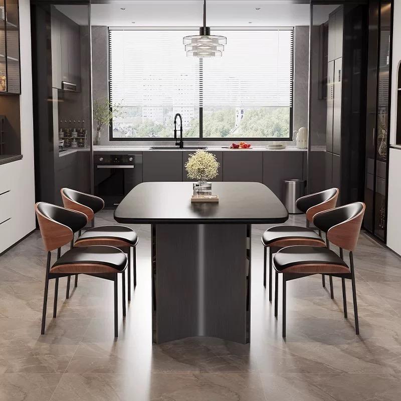 Tavolo da Pranzo Moderno Rettangolare per 6-8 Persone, Facile da Pulire, Nero Opaco, con Gambe in Metallo Robuste.
