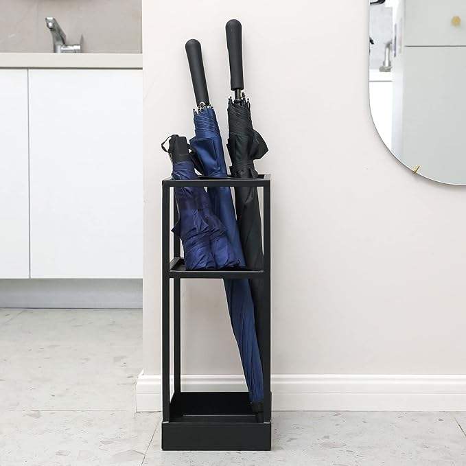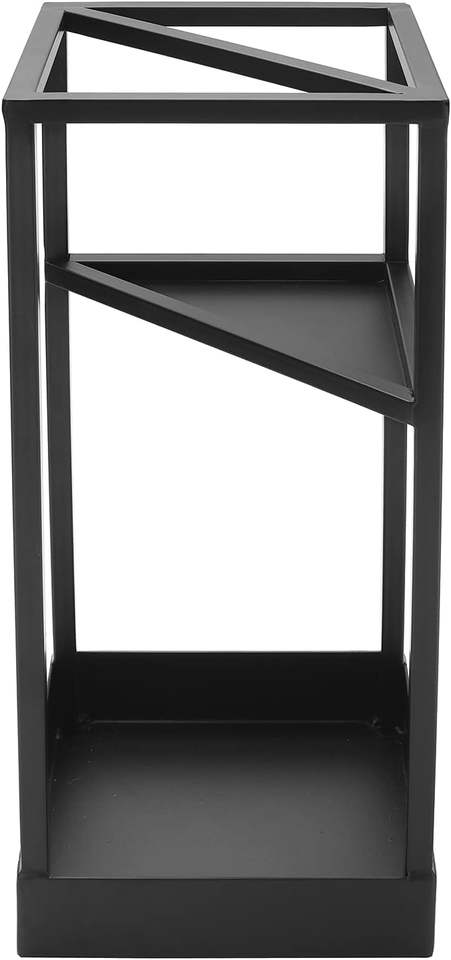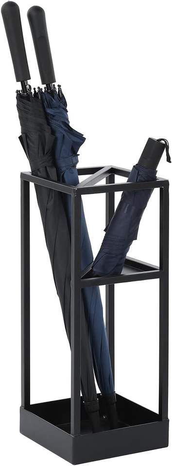 Moderno Rettangolare in metallo nero opaco Freestanding portaombrelli o porta porta canna con mensola per ombrelli piccoli