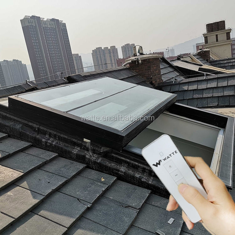 Finestra per Tetto Moderna con Apertura Automatica Telecomandabile, Grande Dimensione, in Alluminio, Scorrevole Elettrica, Lucernario in Vetro per Villa