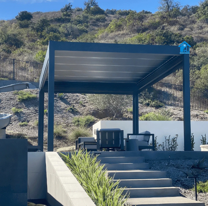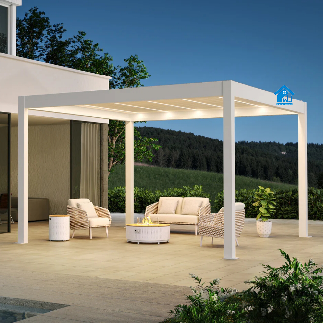 Moderno struttura retrattile in alluminio legno Pergola Gazebo & padiglione per giardino balcone Bar feritoia ad arco profilo tende da sole retrattili