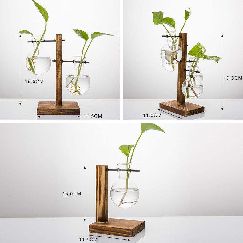 Modern Retro Solid Wooden Stand with New Transparent Glass Planter Vase Terrarium Tabletop Vase for Propagation Hydroponics