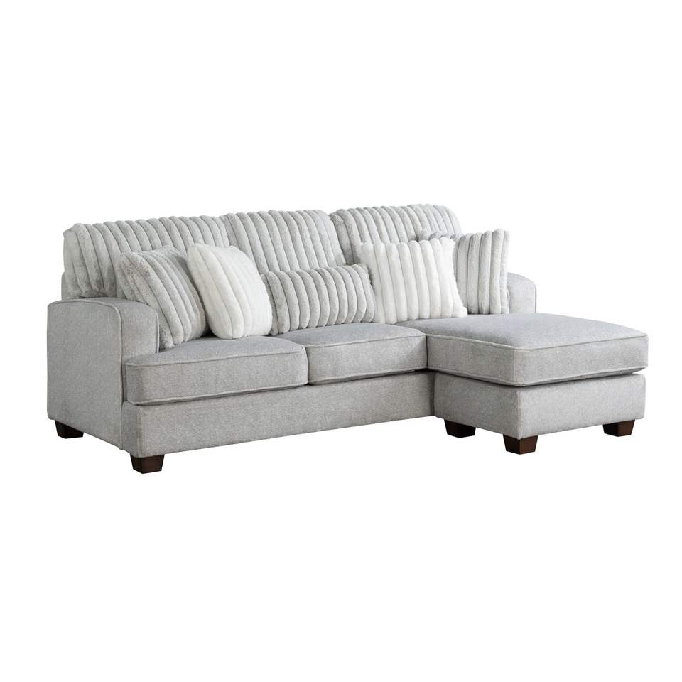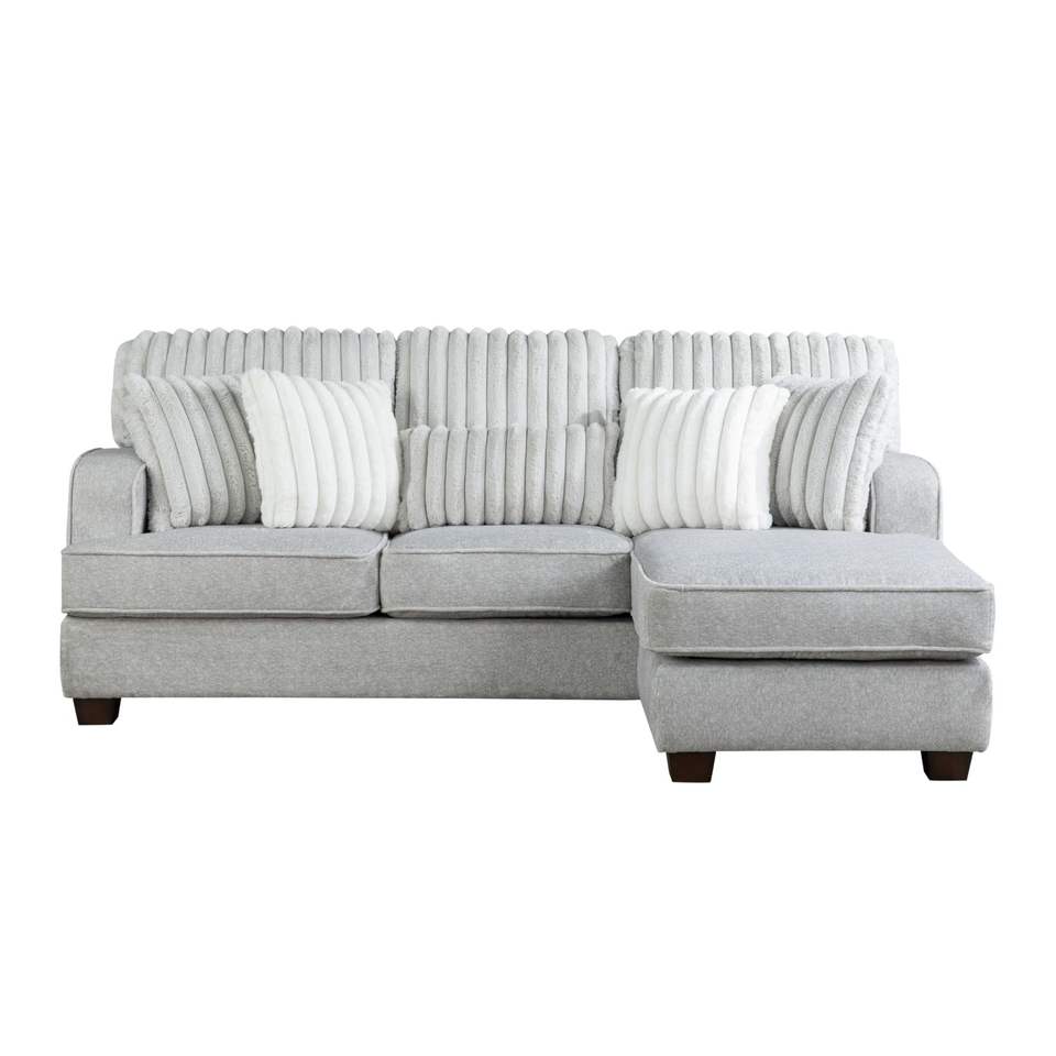 Modern Reversible Sectional Chaise Lounge Corner-Blocked Frame Reversible Cushions Throw Pillows 100% Foam Gray for Livingroom