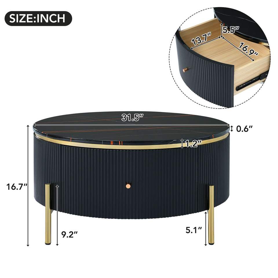 Modern Round Accent Table with 2 Large Drawers 31.5\" Storage Coffee Table