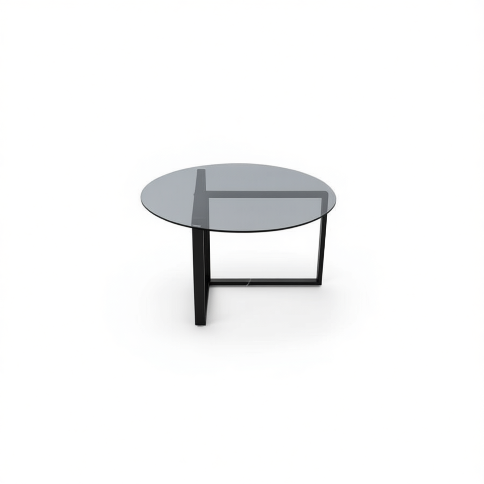 Tavolino da caffè rotondo moderno 80x80x45 cm con piano in vetro e struttura in ferro nero, mobile da soggiorno dal design minimalista, facile da pulire
