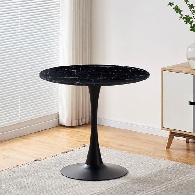 Tavolino rotondo moderno con piano in finto marmo e Base in metallo resistente stile tulipano per soggiorno