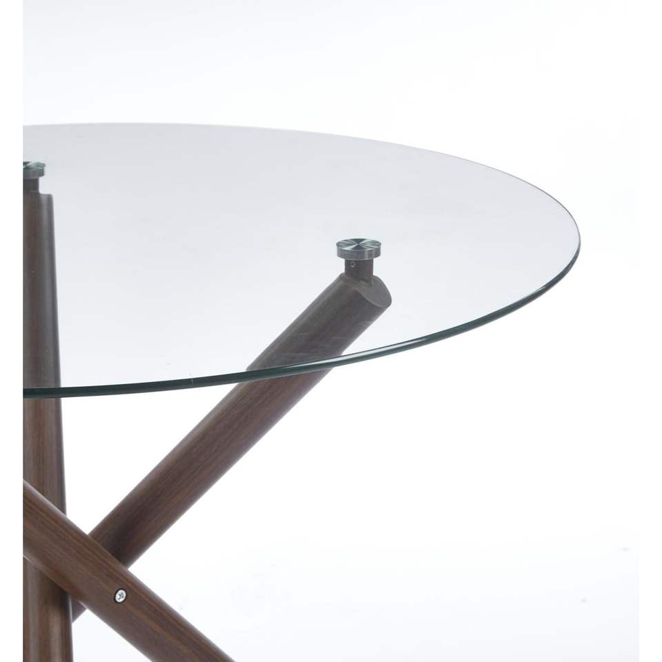 Tavolo da pranzo rotondo moderno con gamba in metallo Color noce e vetro temperato salvaspazio per cucina o soggiorno