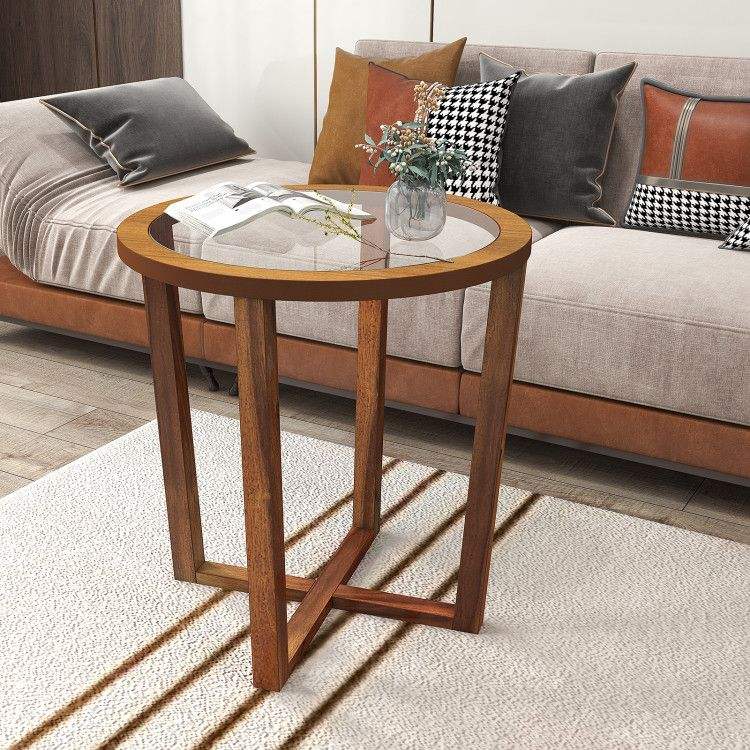 Tavolino Rotondo Moderno con Piano in Vetro Temperato Trasparente, Utilizzabile come Tavolino Laterale o da Caffè
