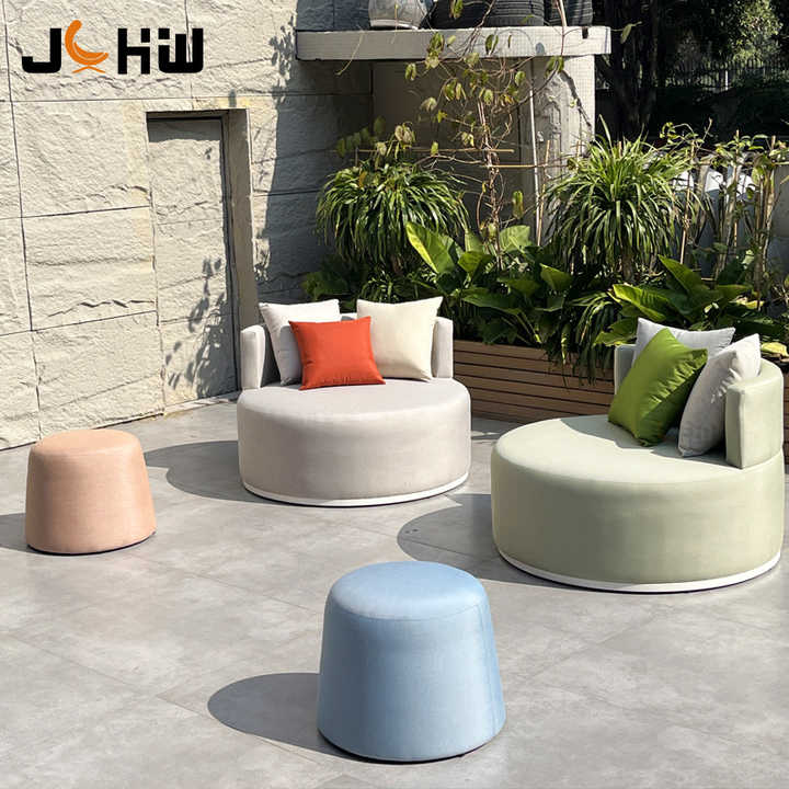 Modern Round Outdoor Dabyed UV Resistant Fabric Garden Sofa with Waterproof Comfortable Cushion for Villa Patio Hotel Garden