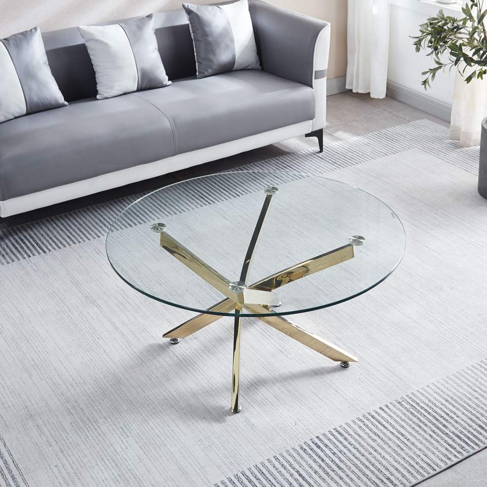 Tavolino da Caffè Moderno Rotondo in Vetro Temperato con Eleganti Gambe Cromate