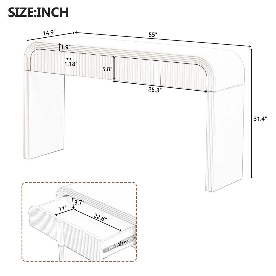 Consolle Moderna con Silhouette Arrotondata e 2 Cassetti, Superficie Liscia Unica per Soggiorno e Ingresso