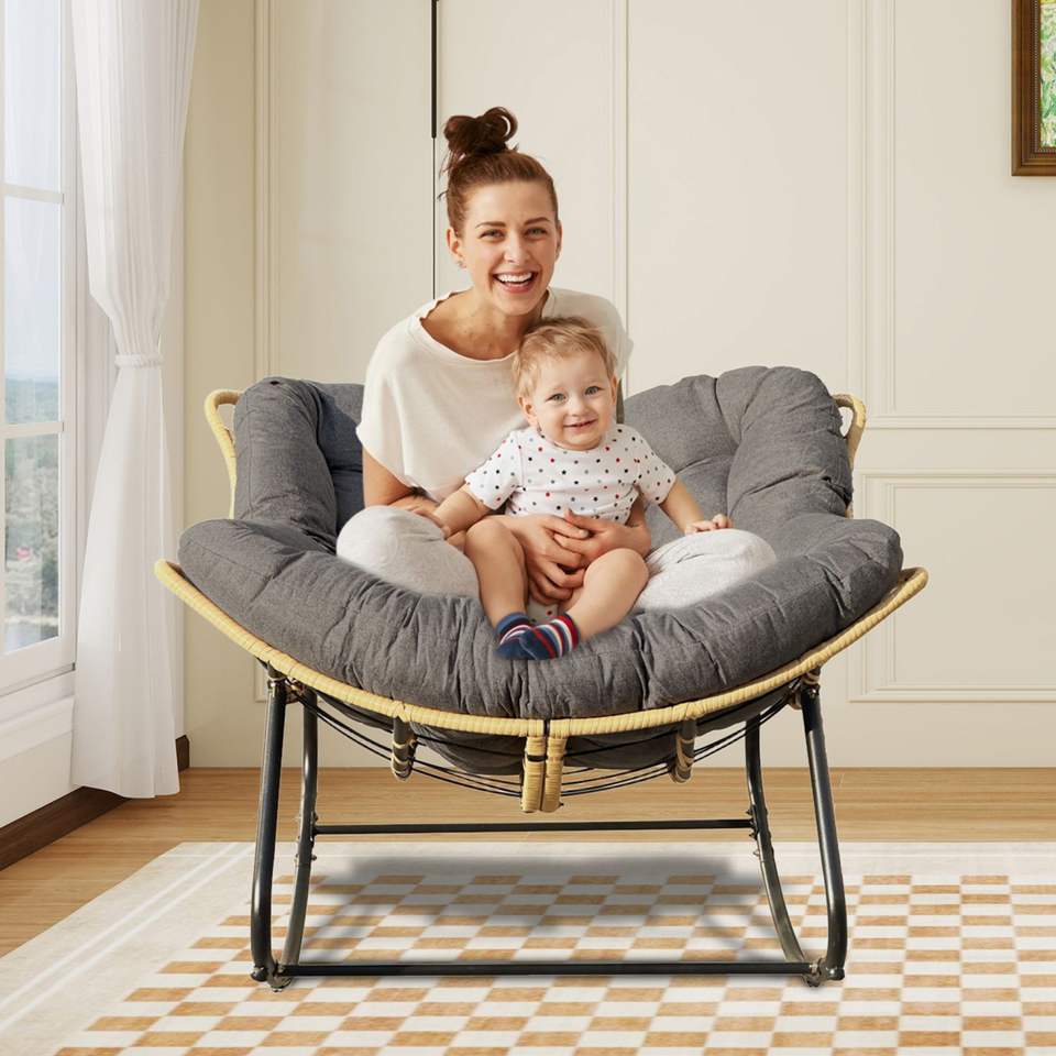 Moderno Royal Dark Grey sedia a dondolo per interni Papasan all'aperto uovo sedia in vimini in Rattan salotto per camera da letto soggiorno prato-Royal