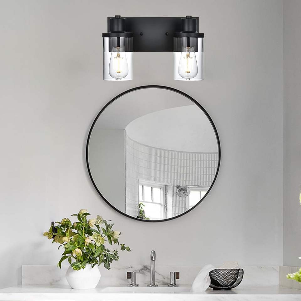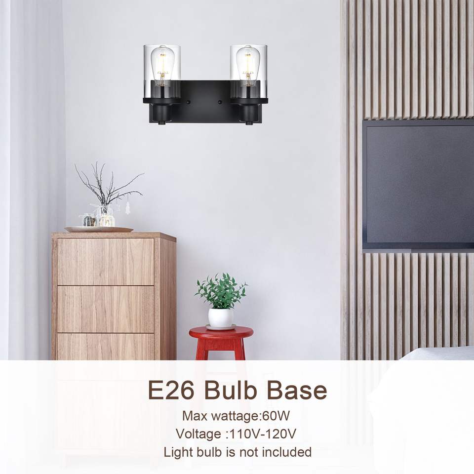 Modern Rustic 6-Light Wall Lamp Sconces Matte Black Finish Clear Glass Shade for Bathroom Vanity Living Room Hallway Lighting