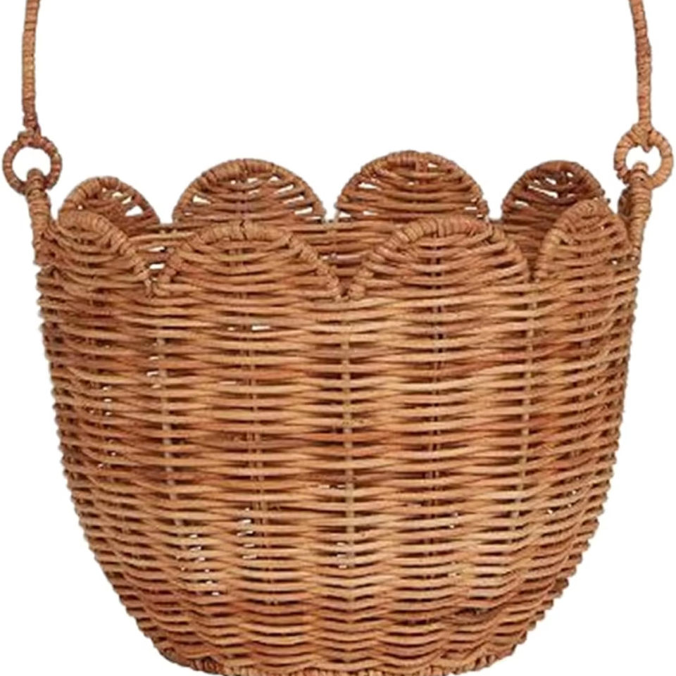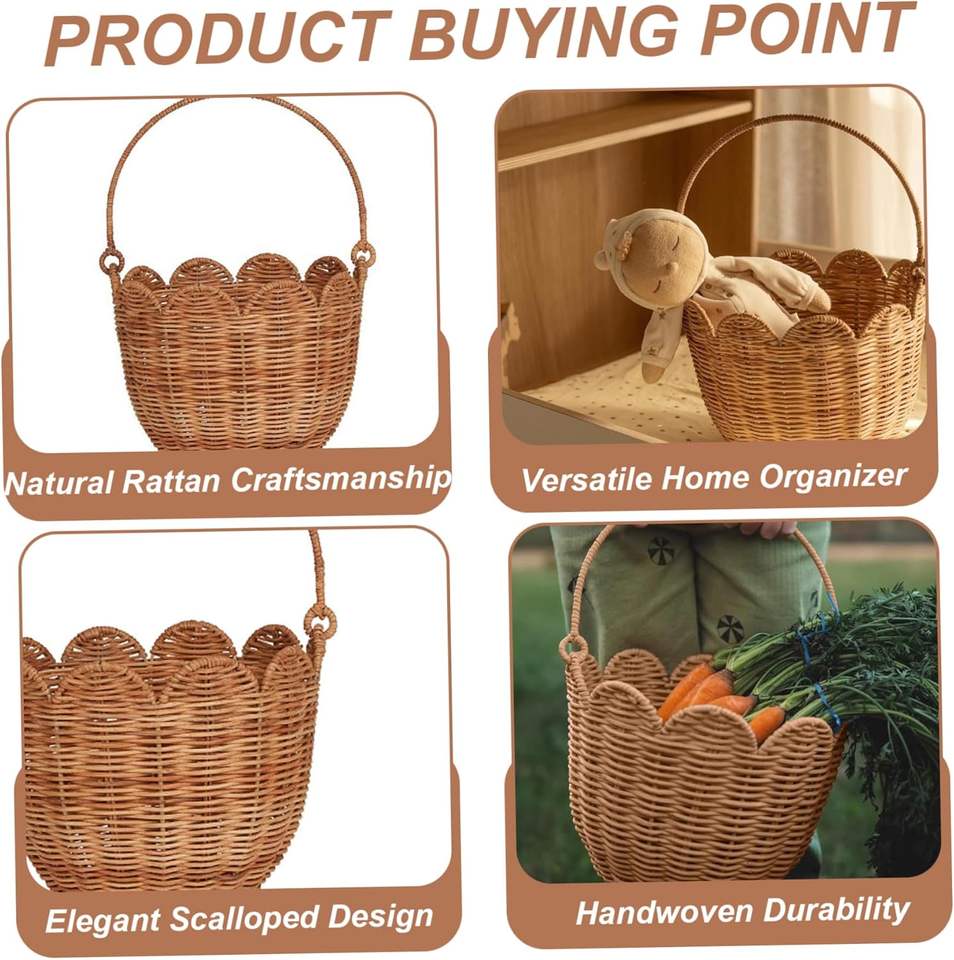 Cestino di stoccaggio in vimini moderno rustico con manico rotondo Easter Organizer per campeggio pic-nic o camera da letto-Feat Organizer