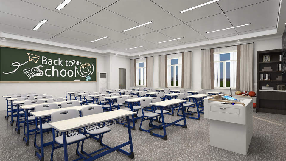 Set di Sedie e Tavoli Moderni per Aule Scolastiche, Posti a Doppio Sedile per Studenti, Scrivania e Tavolo per Studio