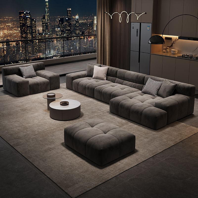 Modern Sectional Fabric Reclining Sofa Set L-Shape Corner Sofa for Apartment and Villa Living Room Luxury Nordic Design