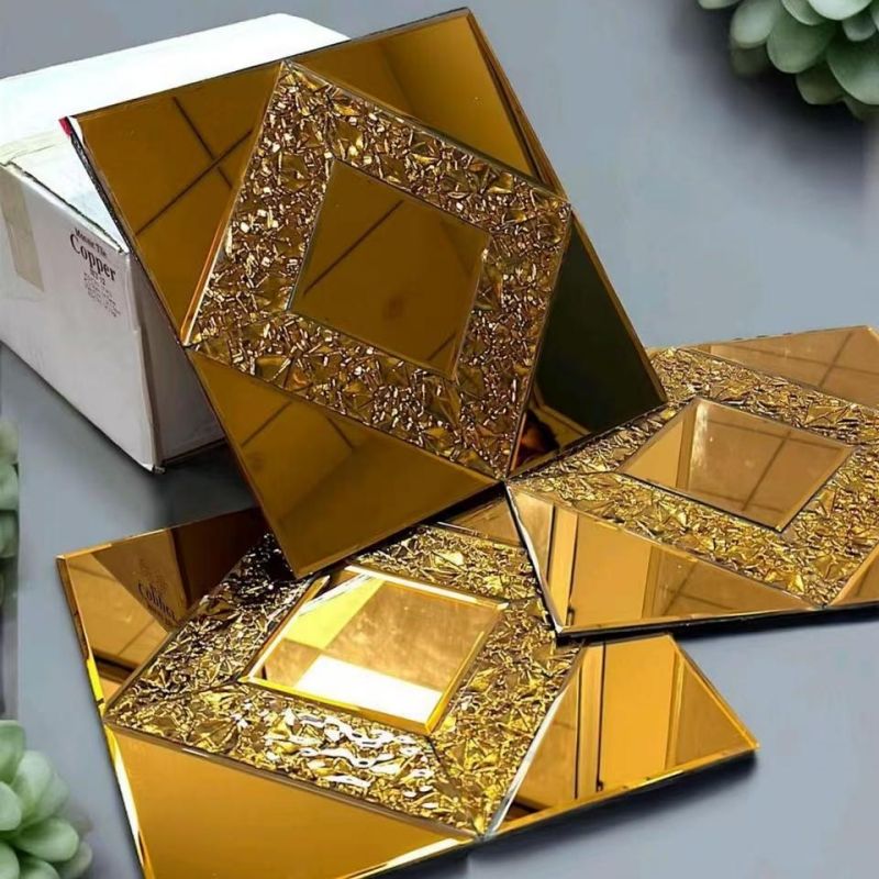 Modern Self-Adhesive Mosaic Glass Wall Tiles 4mm Thick Square Pattern for Home Decor Bathrooms Aluminium Parquet Design