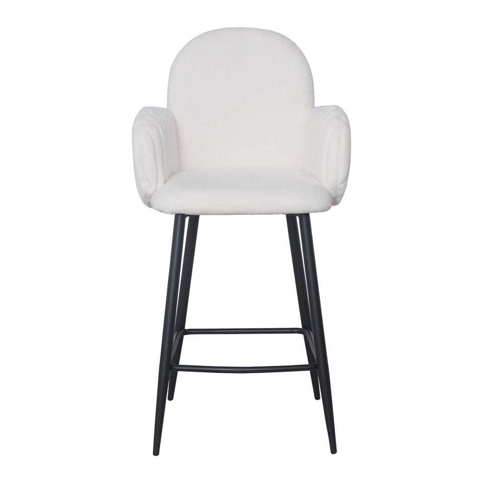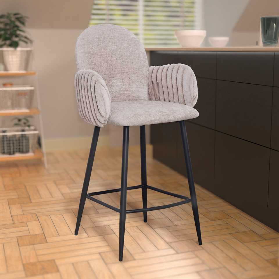 Modern Set of 2 Bar Stools Contemporary Tufted Armrests and Iron Frame Fabric Upholstered High Bar Chair for Cafe Use