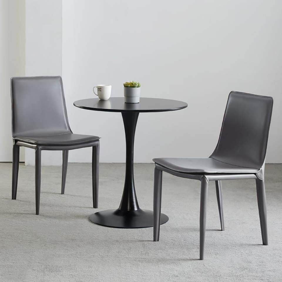Modern Set of 2 Dining Chairs Gray Faux Saddle Leather Upholstery