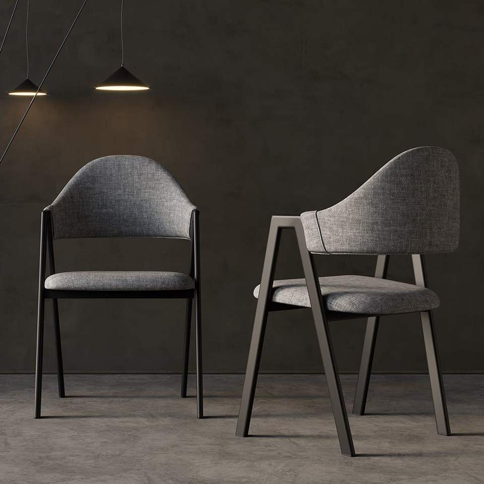 Modern Set of 2 Dining Chairs with Gray Linen Upholstery