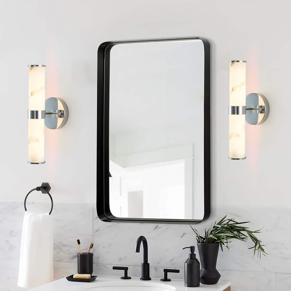 Set Moderno di 2 Applique da Parete in Resina Effetto Marmo Cromato, Lampada Verticale per Bagni, Corridoi e Camere da Letto
